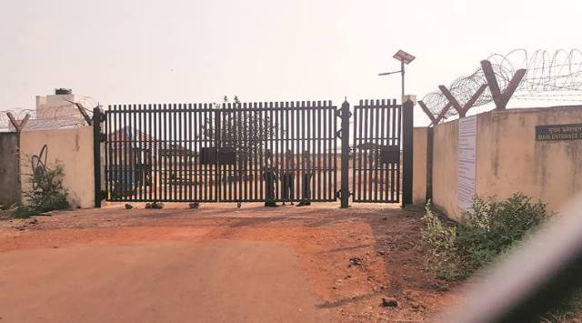 Outside the NPCL office at Madban. (Express Photo by Shubhangi Khapre)