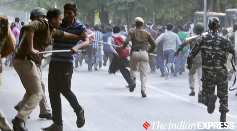 The top brass of Delhi police tried to initiate a dialogue with them but later resorted to lathicharge twice at the students. (Express photo: Praveen Khanna)