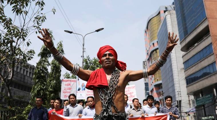 In Dhaka, Bangladesh, a man wears a metal chain as he participates in a May Day rally. (Reuters Photo/Mohammad Ponir Hossain)