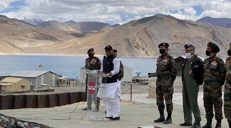 Rajnath Singh at a forward base in eastern Ladakh. (Source: Twitter/@@rajnathsingh)