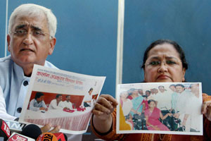 Law Minister Salman Khurshid today came out with documents to rubbish charges of misappropriation of funds by a trust run by him and his wife and expressed willingness for any probe while making it clear that he has no intention to resign. Soon after his return from London,he left the decision about his continuance in the government to the Congress High Command but said he will meet Prime Minister Manmohan Singh to "share my experiences" with him. Addressing a press conference which witnessed high drama and sparring between him and journalists of TV Today group,he displayed documents and photographs to show that camps were held for distribution of equipment to the disabled people. Khurshid,flanked by his wife Louise who is Project Director of the Zakir Hussain Trust,said the Uttar Pradesh government,at their behest,was already probing whether an affidavit signed by a state government official J B Singh carried forged signatures as has been alleged. "Nothing on Rs 71 lakh can be proved. Not a word can be proved. They can scream,scream and scream till they turn blue in their face," said the Law Minister at the one-and-a-half hour long press conference where he lost his temper a number of times and once told a journalist of TV Today group to shut up and leave. Before the press conference,he wanted journalists from Aaj Tak and Headlines Today to be kept out but relented after other journalists said it would be inappropriate. "Let there be any inquiry by any authority. It can be CAG. Inquiry should find out who is responsible for this. But the inquiry should cover the role of India Today group as well," he said. Asked whether he would resign,Khurshid dubbed it as a "disputed question of journalist ethics and political ethics". At the same time,he said he would be ready to take the "extreme decision" in the matter. "I will submit my resignation if Aroon Purie (TV Today Chairman-cum-Managing Director) also steps down," he said. On his continuance in the government,Khurshid said,"the party and the government will decide. I will not take a minute to decide what is in the interest of the party. I am a party worker first." Highlighting his "hurt",he said he would meet the Prime Minister. "I will certainly share whatever my experience with the Prime Minister. He is my leader in the government. He has the right to know. He will certainly know," he said. "Evidence that the affidavit is wrong is not clear. How would Louise know it is forged? We took it at face value. Therefore we have asked the UP government to include this aspect also in the probe," "UP govt is probing into mysterious affidavit that is suspected to have carried forged signatures," he said,adding "Let the UP government establish who signed" it. This comes in the backdrop of allegations that a senior state government official whose signature was carried in the document has denied having signed it,saying he had retired three months prior. To counter the charges levelled against him and wife,the Law Minister released documents to show that 34 camps were held for the disabled people in 2009 and 2010 and produced people associated with these camps. An intended beneficiary Rangey Mistry,who figured in the sting operation conducted by Aaj Tak channel,was also produced before the press. He said he had received a hearing aid gadget from the Zakir Hussain Trust two years back,amid cheering by the Law Minister and others. Khurshid said others who figured in the TV programme which he refused to accept as a "sting" operation will also appear before media. "Somebody,somewhere sitting in some office,which is feeding India Today is also the person who is worried about the inquiry. Too much will come out. And what they have been doing for years,will immediately be exposed," he said. Referring to his defamation case against TV Today Group,he said,"We have gone to court in a civilised manner. Let there be an indepth inquiry to find who is responsible for what." TV Today Group has already issued a statement,saying it stands by the "veracity" of its report and would "defend" it. Khurshid,who almost walked out of the press conference following a verbal spat with TV Today reporters,said the probe by the Uttar Pradesh government will cover 12 points. He rejected suggestions that he should step down for the sake of an impartial probe. He said when a reference was made to the Law Ministry recently by the Central Information Commission on whether fund details of NGOs getting money from the government come under the ambit of the RTI Act,the Legal Affairs Department opined that such organisations were bound to make the details public. "The file did not come to me.that Trust referred to was the Zakir Hussain Trust," he said,indicating that he could have influenced the issue if he wanted to. To a question on the draft CAG report,he said since the documents were now available with Ministry of Social Justice and Empowerment,they would be handed over to the auditor. "Even we can hand them over the fresh batch of documents. They have said that they would be happy to factor in these while writing the final report," he said. In a veiled attack on CAG for its claims that the Trust members were not available at their Okhla address,he said had the CAG wanted it could have left a note asking the Trustees to contact them. He said officials must have forgotten to leave a note in a hurry. He said CAG Vinod Rai was his next door neighbour and CAG officials knew where to find him and his wife Louise. He said besides the defamation suit filed against the news group in the Delhi High Court,more cases are to follow. Some people associated with the Trust want a case to be filed in London courts as the channel is also shown there. "I cannot stop them from doing so," he said. On charges that some camps actually did not take place,he said apparently the officials in the district were asked only to inform if the camp was held on a particular date. "The camp could have been held on Septemb