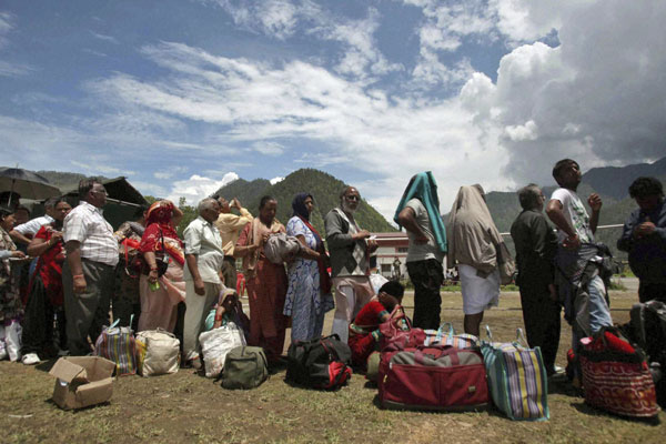 Bad weather has also prevented temple committee’s 15-member team,which is supposed to take part in the clean-up work,to reach the Kedarnath area.