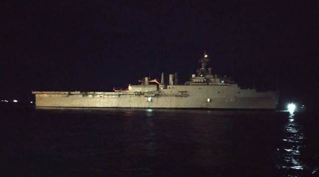 INS Jalashwa sets sail from Male, Maldives, bringing back 698 Indian citizens. (Source: Indian Navy PRO)