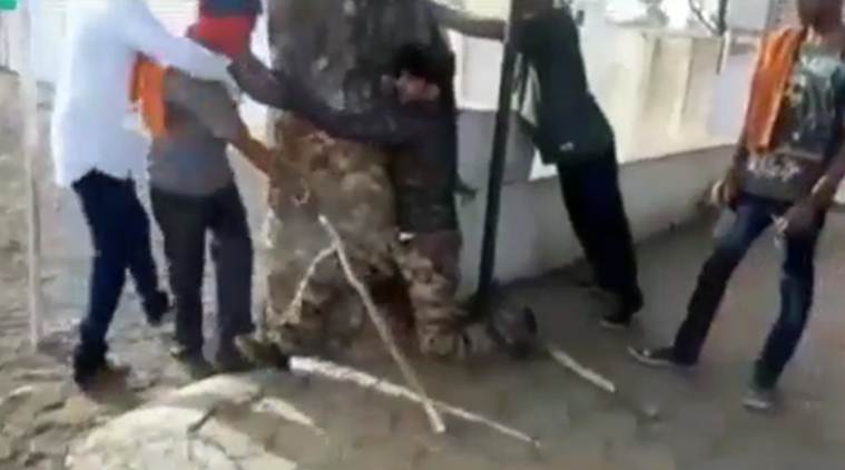 TWO MEN were beaten up with sticks — one was tied to a tree — and made to raise slogans of “Jai Shri Ram” by five suspected gau rakshaks, who accused them of carrying beef, in Seoni district of Madhya Pradesh, police said. A video clip of the incident, which is being circulated on social media, also shows the accused forcing one of the men to beat up a woman accompanying them and making her chant “Jai Shri Ram”.
