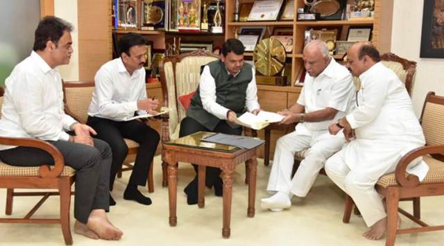 The Maharashtra and Karnataka governments have decided to jointly oppose Andhra Pradesh’s application seeking a relook at the Krishna Water Disputes Tribunal’s order on water distribution among the states following the creation of Telangana. The decision was taken on Tuesday at a meeting between Karnataka Chief Minister B S Yediyurappa and his Maharashtra counterpart Devendra Fadnavis at the latter’s residence in Mumbai. The two states also decided to set up a high-level committee for better dam management to avoid floods. The decision comes in the wake of floods in Kolhapur, Sangli and Satara districts in western Maharashtra. According to an official statement issued by the Maharashtra government, the two states would jointly counter Andhra Pradesh’s petition to the water tribunal to rework the allocation of water share among four states to accommodate Telangana. The Maharashtra and Karnataka government believe that “Telangana was created following bifurcation of Andhra Pradesh. Therefore, allocation of water should be from Andhra Pradesh’s share which was approved by the tribunal”. In 2010, the tribunal had announced the share of water for each state with 800 thousand million cubic feet (TMC) for Andhra Pradesh, 700 TMC for Karnataka and 560 TMC for Maharashtra of the total 2,060 TMC of available water. However, Andhra Pradesh argued that under Section 89 the state reorganisation Act, water distribution should be among all the four states. At the meeting on Tuesday, the Karnataka CM also raised the issue of water discharge from Koyna dam to to avoid floods in villages along the state’s border with Maharashtra. Inter-state flood management was dwelt at length during the meeting. The water regulation in Karnataka’s Almatti dam was critical to tackle the floods in Kolhapur, Sangli and Satara. Karnataka Deputy CM Dr C M Ashwathnarayan, Home Minister Basavaraj Bommai, Maharashtra Water Resources Minister Girish Maharaj and Power Minister Chandrashekhar Bawankule were also present at the meeting. Earlier, Yediyurappa also offered Ganesh puja at Fadnavis’s residence.