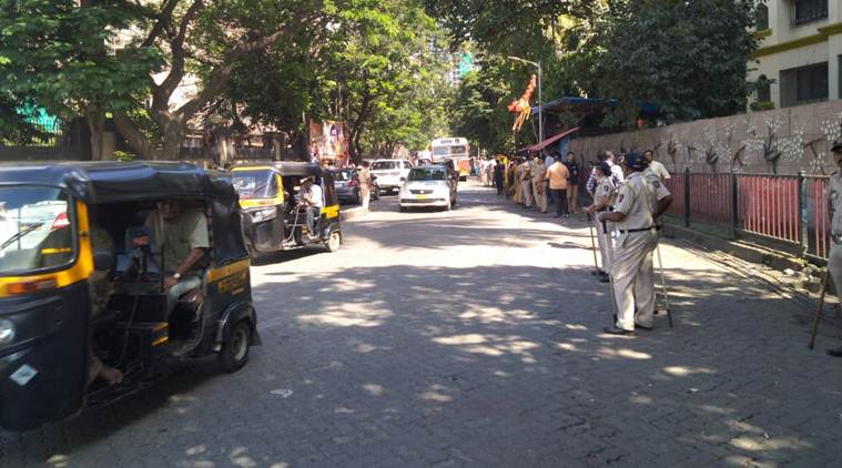 Tight security in place outside Matoshree Tower ahead of Shiv Sena's MLAs' meet on Thursday. (Express photo)