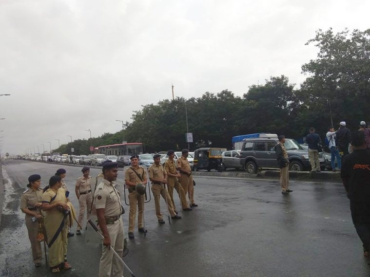 Security has been deployed at various places to avoid any untoward incident. The pro-reservation groups have exempted schools, hospitals, medical and other essential services, including vegetables from the bandh. No school buses were attacked or stopped in any area. Ambulance services were also running normal, a senior official of the public health department said. The Shiv Sena has been supporting the Maratha community's demand for reservation but decided not to participate in the protest. (Express Photo by Amit Chakravarty)
