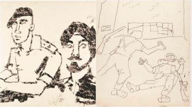 Husain made several drawings of the destruction he witnessed, and recreated visuals of battle stories as recounted by the soldiers. “Husain offered to draw portraits of anyone willing to sit for him. Many did, as did a Sikh gentleman, who shared the legendary Abdul Hameed’s jeep as he went about destroying the enemy’s assets. Husain gave away many drawings to his models but also brought a few back for himself,” Khanna says.