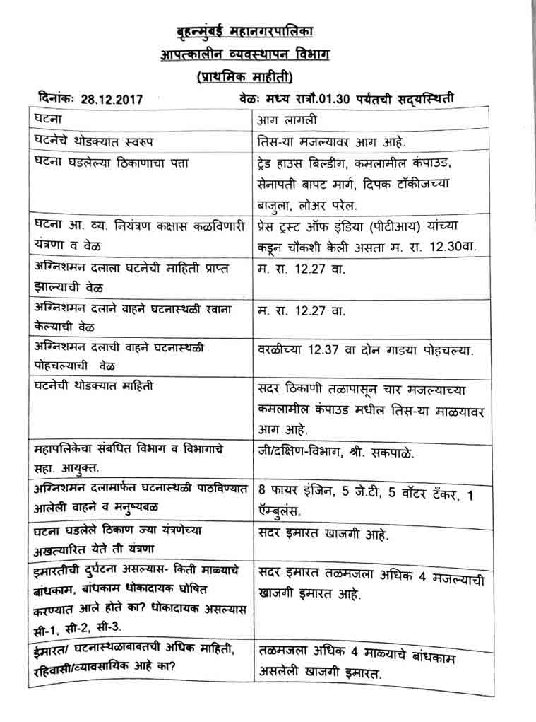 Ordered for safety audit of all such structures immediately&demolish illegal ones:CM @Dev_Fadnavis at #KamlaMills pic.twitter.com/T5mG8aK4ZW— CMO Maharashtra (@CMOMaharashtra) December 29, 2017