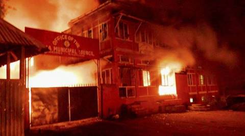 Kohima: Naga tribals set ablaze the Kohima Municipal Council office and the office of the district collector to protest against Chief Minister TR Zeliang’s refusal to meet their ultimatum, in Kohima on Thursday. (file photo)