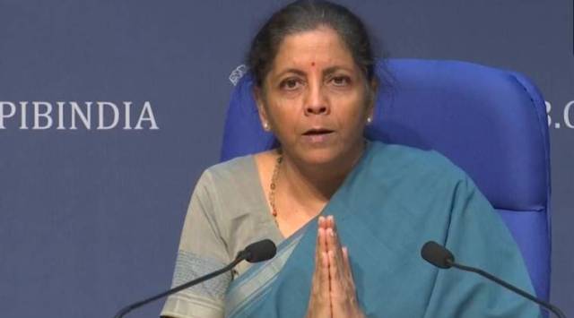 Finance Minister Nirmala Sitharaman at a press conference in New Delhi on Sunday. (Screen grab)