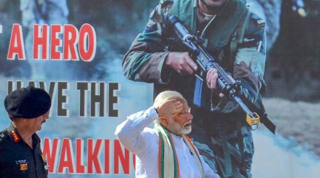 Prime Minister Narendra Modi at ‘Parakram Parv’, to mark the surgical strikes, in Jodhpur on Friday. (PTI photo)