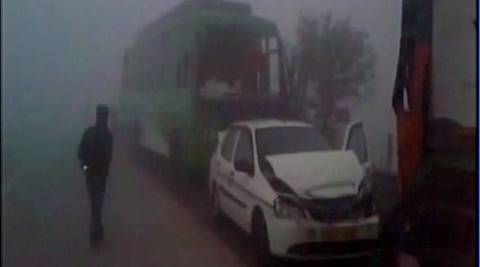 The ASP of Greater Noida said that due to low visibility, a car rammed into a tractor trolley, leading to a pile-up involving a dozen vehicles. In the accident, Mathura-resident Pankaj died on the spot and around 10 others sustained injury. The injured have been admitted to various hospitals.