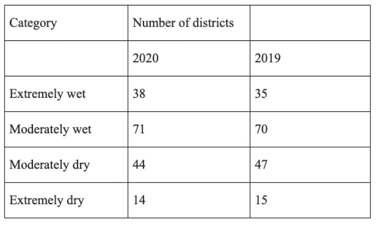 This time last year, a total of 122 districts were facing such dry conditions – about 9.13 per cent area of the country.