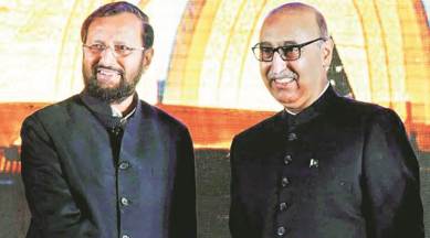 Prakash Javadekar with Abdul Basit at last year’s Pakistan Day event. (Source: PTI Photo/File)