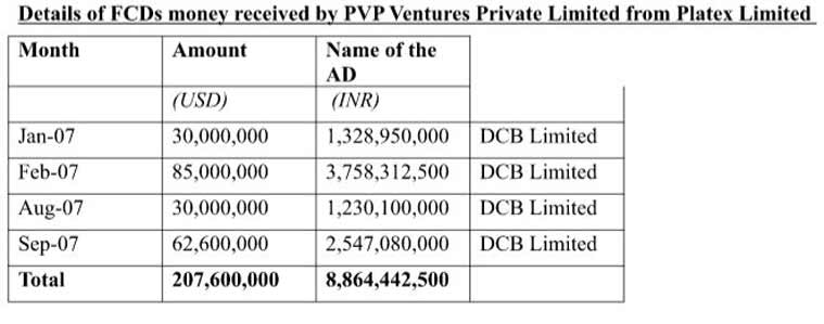 Ans – Yes, Platex Ltd., was the vehicle formed to invest in PVP Ventures Pvt. Ltd. Upon formation, the funds that were raised from lenders vide facility agreement dated 22.12.2006, $207 million which is in INR 886.44 crores in 2007-08, against which PVP Ventures Pvt Ltd has issued 88,644 FCDs of Rs. 1,00,000 each with coupon rate of 14.5%. Subsequently, issued FCD’s were converted as mentioned below to equity shares of PVP Ventures Ltd