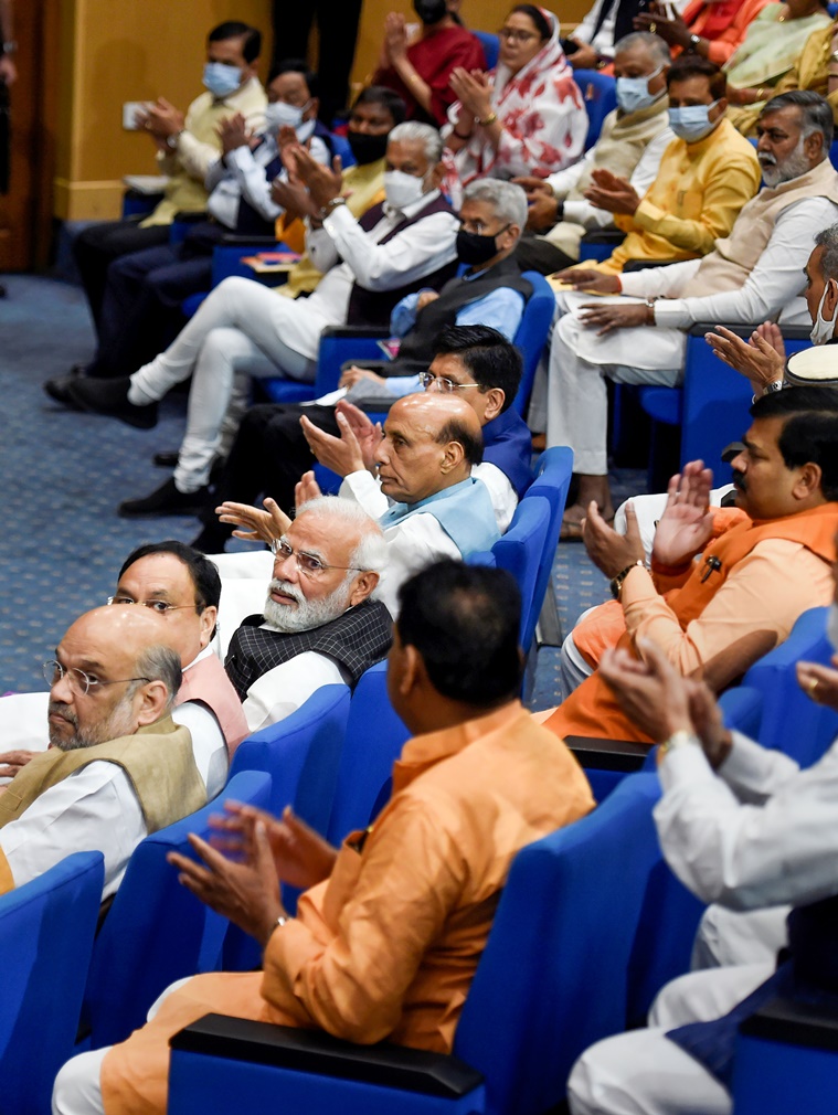 PM Modi, Nadda, Union Ministers Amit Shah and Singh and other BJP leaders during the BJP parliamentary party meeting (PTI)