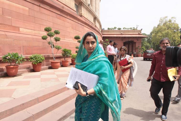 Union Cabinet Minister of Food Processing Harsimrat Kaur Badal arrives at the Parliament.
