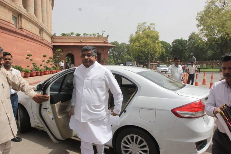Law and IT Minister Ravi Shankar Prasad arrives at Parliament.
