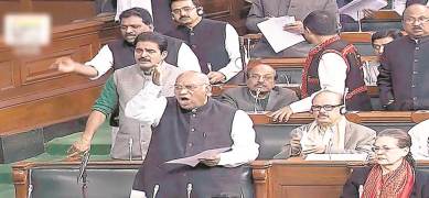 Jakhar was followed by Gurjit Singh Aujla, Sushmita, Gogoi, Santokh Singh Chaudhary and Adhir Ranjan Chowdhury. The protestors returned to their seats when Kharge started speaking with his mike off. Nothing of what he said went on record. He wrapped up the speech by announcing a walkout. Later, Ananth Kumar said: “They tried to conduct mock proceedings. One senior Congress leader after another kept speaking defying the chair. The entire House condemns it.”