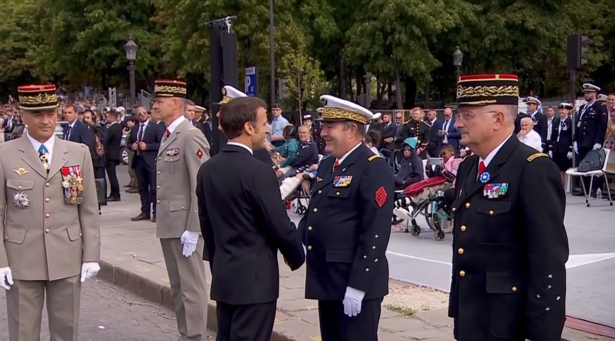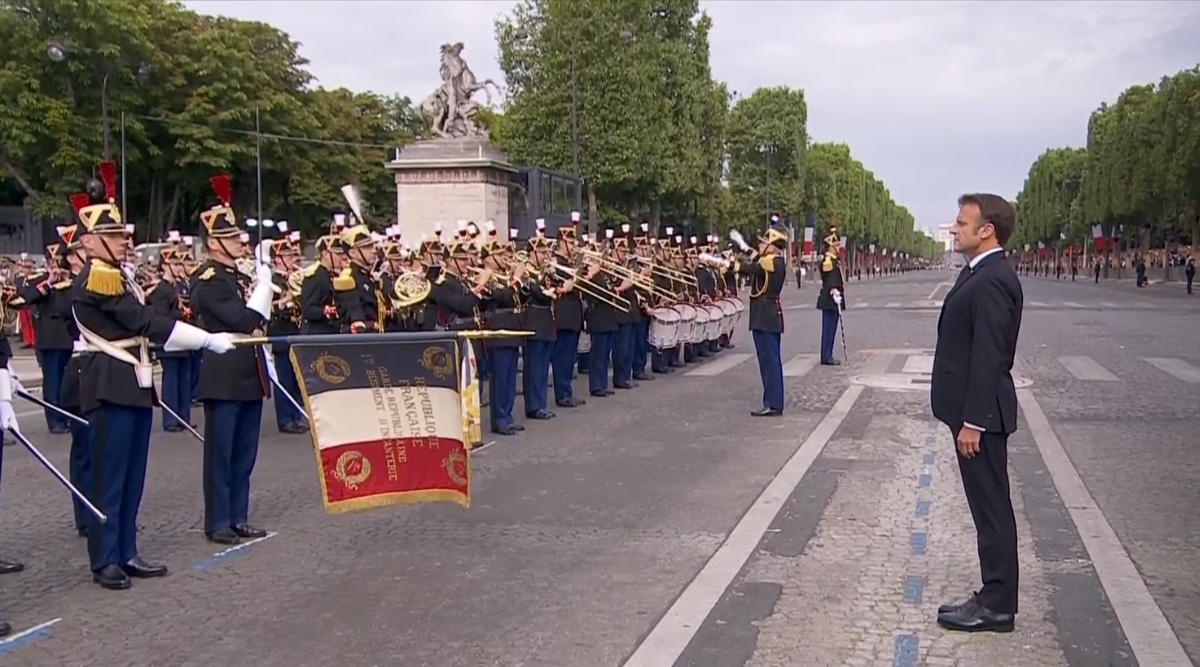 French President Emmanuel Macron is meeting with military leaders and the inspecting the troopers, officers and infantry units of the French army as a part of Bastille Day celebrations.