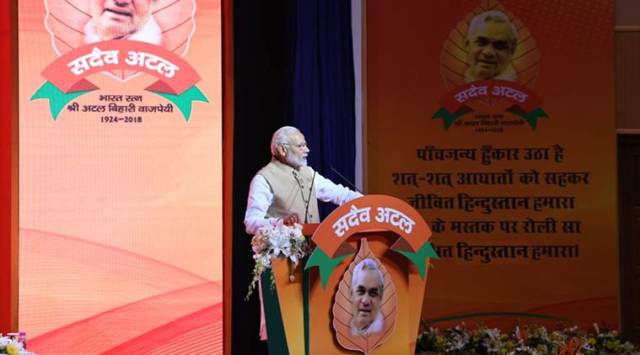According to Prasad, the PM also paid tributes to former prime minister Atal Bihari Vajpayee and came up with the slogan — “Ajeya Bharat, Atal BJP” (Unbeatable Nation, Firm Party).