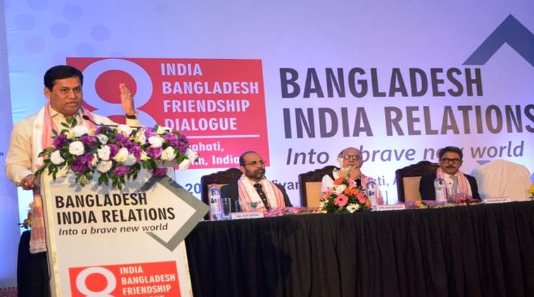 Sonowal speaking at the India-Bangladesh Friendship Dialogue function in Guwahati on Sunday evening. ( Photo: DIPR/Assam)