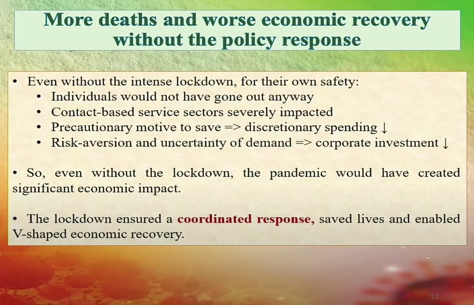 – KV Subramanian said that India was the only country to announce structural reforms. “India focused on saving lives and livelihoods; took short term pain for long term gain. Recognized that GDP growth will recover, lost human lives cannot be brought back,”