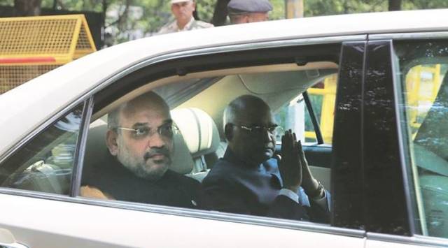 Accompanied by Prime Minister Narendra Modi, more than a dozen chief ministers, several Union ministers and top BJP leaders, NDA candidate Ram Nath Kovind filed his nomination papers for the Presidential polls. Assuring that he would keep the highest constitutional office above “party politics”, Kovind, 71, said he would “strive to see to it that a dream to build new India” is fulfilled by 2022. In an attempt to reach out to the Opposition, Kovind, in a brief address to the media at Parliament House after filing his nomination, said, “Since I became the Governor (of Bihar, in 2015) I do not belong to any political party.. It is my belief that the post of President is above party politics, and I will strive to keep it so. I appeal to all members of the electoral college for support.” The BJP, which pulled all stops to make the process of nomination filing a show of strength, claimed that Kovind will win around 70 per cent votes in the electoral college, which consists of all Parliamentarians and MLAs across the states. Reading out from a prepared text, Kovind told the media that his priority would be working for the country’s “all-round development, fulfilment of youths’ aspirations, addressing their concerns, and encouragement to modern education”. He said, “I will strive to see to it that the dream to build a new India, which is developing continuously, is fulfilled when we celebrate 75 years of independence in 2022.” Calling the BJP’s victory in Assembly elections in different states earlier this year as indication of the emergence of a “new India”, Modi had, in March, said, “I don’t live by election calculations. My target is 2022, not 2019 — 2022 will mark 75 years of India’s independence. We have five years to contribute to change India.” Starting with a scheduled meeting with Uttar Pradesh MLAs and MPs in Lucknow on June 25, Kovind is expected to visit most states to seek votes before the July 17 election. Union minister Nitin Gadkari will accompany him to UP. Earlier in the day, BJP chief Amit Shah, party veterans L K Advani, M M Joshi, Union ministers and chief ministers of all BJP-ruled states and its allies — barring Goa’s Manohar Parrikar and Jammu and Kashmir’s Mehbooba Mufti — accompanied Kovind as he walked from Library Building to Parliament House to file his nomination. Parrikar was down with viral fever, and Mufti had to cancel her trip to New Delhi after Deputy SP Mohammad Ayub Pandit was lynched outside a mosque in Srinagar on Friday. BJP leaders were thrilled as Telangana Chief Minister K Chandrashekar Rao (of TRS) and his Tamil Nadu counterpart Edappadi K Palaniswami (AIADMK) also reached Parliament House. Neither party belongs to NDA but both have announced support to Kovind. In fact, both factions of AIADMK were present today. While leaders of O Panneerselvam faction came much before even the BJP CMs arrived, Palaniswami and party MPs from his faction arrived just minutes before nomination was filed. Biju Janata Dal, which will be BJP’s main rival when Odisha goes to the polls in 2019, and JD(U), which broke ranks with BJP in 2015, have also declared support for the NDA candidate. But ally Shiv Sena, which has announced support to Kovind, was not represented on the occasion. While Sena leaders said they were not invited, BJP leaders maintained that there was a confusion. “Sena leader Anandrao Adsul met (Union minister) Ananth Kumar to sign the nomination papers. There was some confusion.it was certainly not intentional,” said a senior BJP leader who did not want to be named. Kovind filed three sets of nominations on Friday. Another set will be filed on the last day of filing nomination — June 28. Each set of nomination papers has been signed by 60 leaders as proposers and 60 as seconders, making it 480 MPs/MLAs signing the papers for him. In the first set, Prime Minister Modi was the proposer, Advani was the second signatory and Home Minister Rajnath Singh was the first seconder. The second was prepared in Hindi, as suggested by Amit Shah, and he himself signed it along with M M Joshi, Yogi Adityanath and Shivraj Singh Chouhan. The third was signed by Sushma Swaraj, Parkash Singh Badal and Chandrababu Naidu.