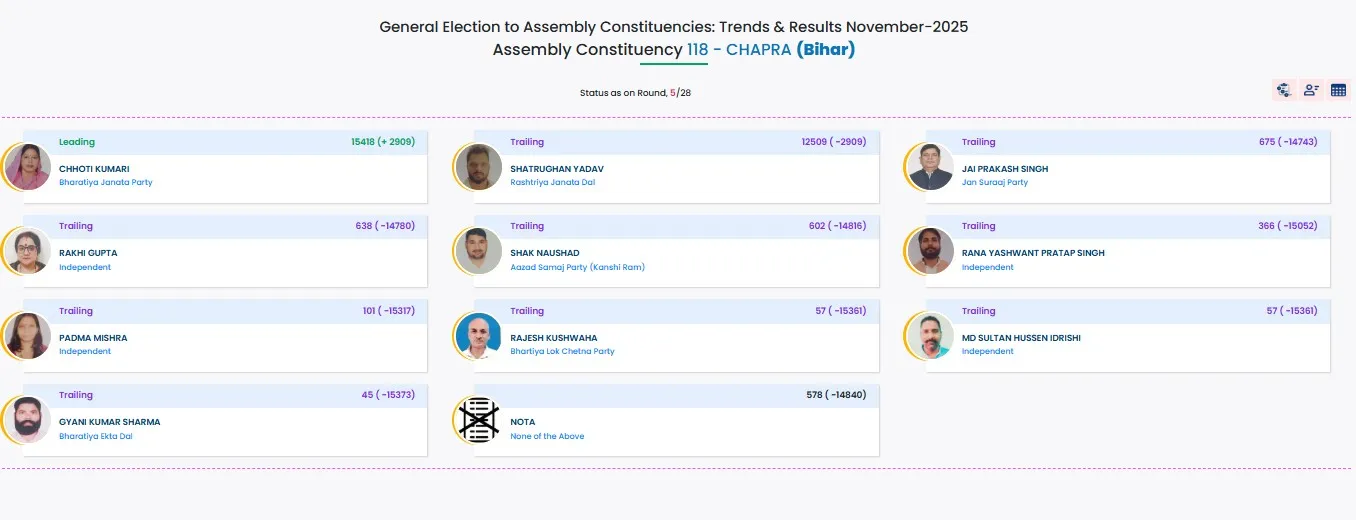 Khesari Lal Yadav’s fight from Chapra: After counting, Chhoti Kumari of the Bharatiya Janata Party won the contest with 86,845 votes, securing a comfortable margin of 7,600 votes. The Chapra seat also witnessed a heated contest as RJD candidate Shatrughan Yadav, popularly known as Khesari Lal Yadav, a Bhojpuri film star and singer contested against BJP’s Chhoti Kumari. The Chapra seat has been traditionally dominated by Yadavs and Rajputs, and also has a significant chunk of voters from the Vaishya and Muslim communities. The erstwhile Chapra Lok Sabha seat (before 2008 delimitation) was represented by RJD chief Lalu Prasad four times between 1977 and 2009. However, the party’s influence here has been waning.