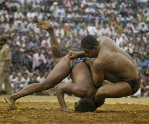 Mission Dosti – an Indo-Pak Wrestling contest,which was fifth in the series,was organized by the Indian Style Wrestling Association of India in collaboration with Jammu Kashmir Tourism Department,Shri Mata Vaishno Devi Shrine Board (SMVDSB) and Municipal Committee,Katra. The Minister for Medical Education,Technical Education and Youth Services and Sports,R.S.Chib was the chief guest on the occasion,who formally declared the wrestling championship open by releasing pigeons and tri-coloured balloons in the air.