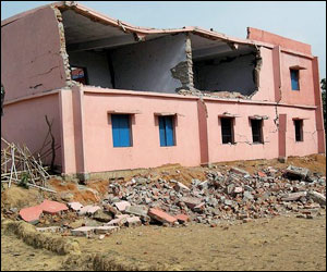 An unspecified number of CPI (Maoist) guerrillas swooped on Chakarbanda village at around 3 AM and brought down the portions of the buildings of a middle school,community centre and panchayat bhawan that were still left standing after they bombed them on Monday,police said.
