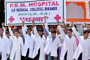 Demanding action against senior police and administration officials,private and government doctors went on a strike in around 40 hospitals in Jodhpur,while resident doctors have stopped work in Jaipur,Kota,Ajmer and Bikaner.