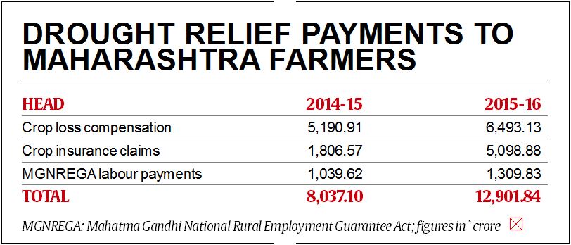 But as the accompanying table shows, the Maharashtra government infused around Rs 20,939 crore during the two consecutive drought years through time-honoured relief measures such as crop loss compensation, insurance claims and labour payments under MGNREGA. In addition, rescheduling of crop loans and reduced interest on these — plus the state government’s ambitious Jalyukta Shivar programme of water and soil conservation in 25,000 drought-prone villages — turned out to be significant interventions.