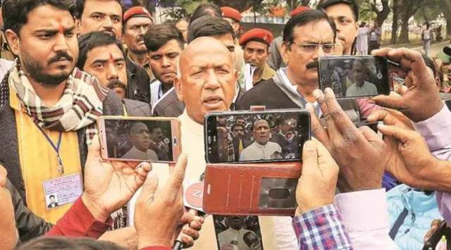Saryu Roy talks to the media in Jamshedpur. (PTI)