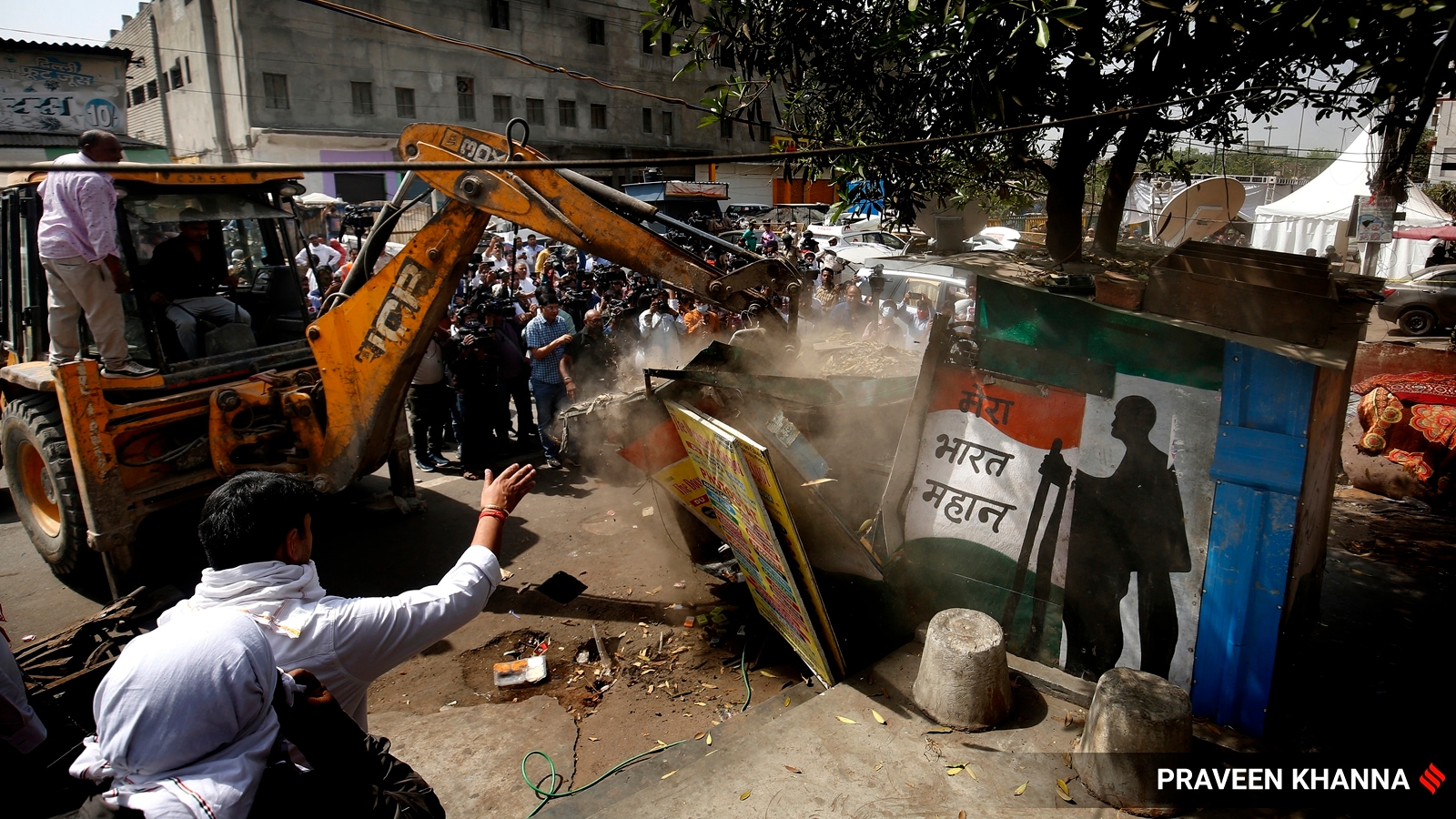Anti-encroachment drive being carried out in Delhi's Jahangirpuri on April 20, 2022 (Express Photo by Praveen Khanna)