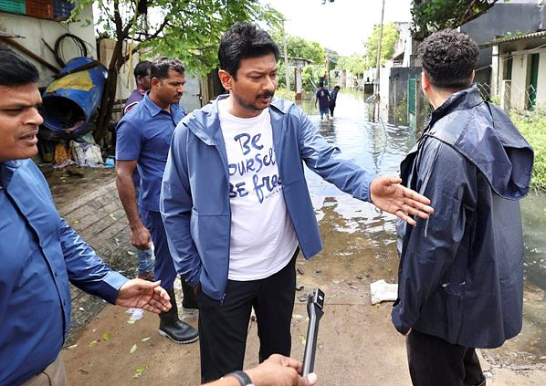Deputy Chief Minister Udhayanidhi Stalin Wednesday inspected the Integrated Command and Control Center at Ripon Buildings, Chennai, and directed officials to act swiftly on public complaints. He also visited many rain-hit areas in the city along with senior Greater Chennai Corporation (GCC) officials.