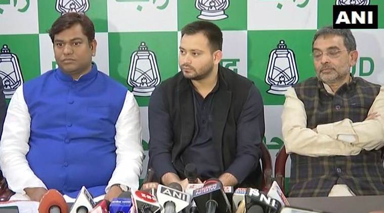 Hours after the BJP announced its seat sharing formula in Bihar for the 2019 Lok Sabha polls, RJD leader Tejashwi Yadav and former ally Upendra Kushwaha on Sunday said the saffron’s party decision to cut down on the number of seats it contested in the last general elections underscored the party’s lack of confidence.