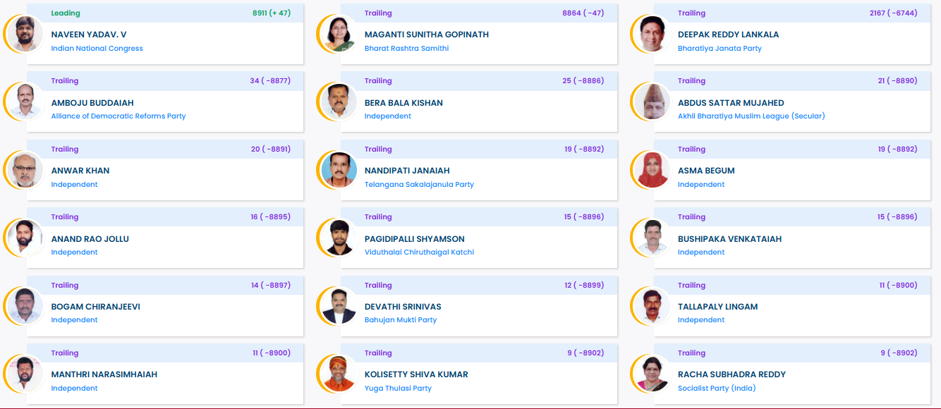 What necessitated the bypolls: The Jubilee Hills seat fell vacant following the death of BRS MLA Maganti Gopinath in June, while the Nuapada bypoll was necessitated by the death of sitting BJD legislator and former minister Rajendra Dholakia. The outcomes of both contests are being closely watched as indicators of regional political trends in Telangana and Odisha.