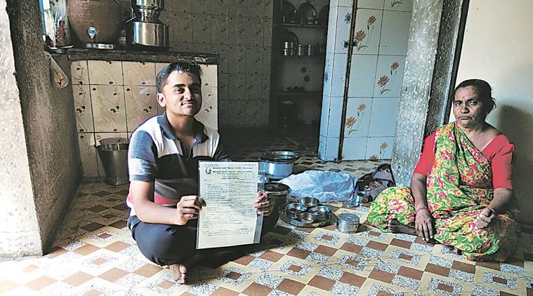 Parth Goswami shows his school-leaving certificate. (Express/Gopal Kateshiya)