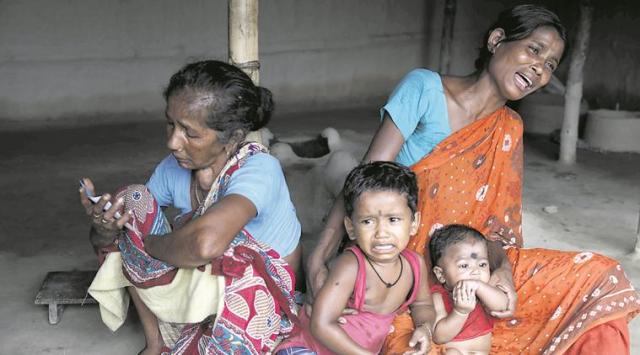 Md Nasiruddin’s wife, children and mother Zarina Begum (left). Partha Paul