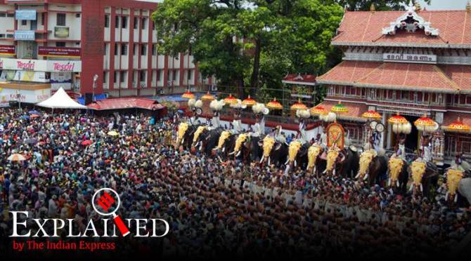 Thrissur Pooram 2019 Highlights: The 2019 edition of the Thrissur Pooram, an extravagant temple festival in Kerala involving scores of elephants, traditional percussionists and high-voltage fireworks, will conclude tonight. Earlier today, the entire town of Thrissur in central Kerala came to a standstill as lakhs of people assembled around the Thekkinkadu Maidanam braving the hot sun and humid weather to participate in the festivities. The central attraction of the festival was the Elanjithara Melam, considered the world’s largest live orchestra of percussionists known for its technical brilliance. In the evening, 30 caparisoned elephants, with 15 on either side, stood facing each other in a wonderful ceremony called the ‘Kudamattam’.