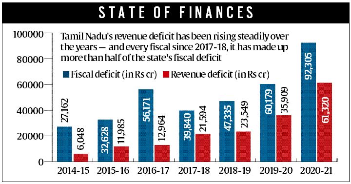The white paper showed that the state had a revenue deficit of Rs 61,320 crore in 2020-21 — which made up more than half of the fiscal deficit in that year, Rs 92,305 crore.
