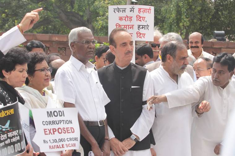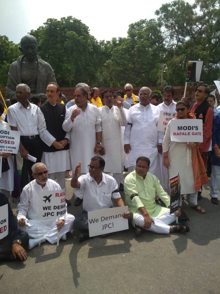 Opposition MPs including Congress MPs and AAP MP Sushil Gupta hold a protest outside Parliament over Rafale deal issue.