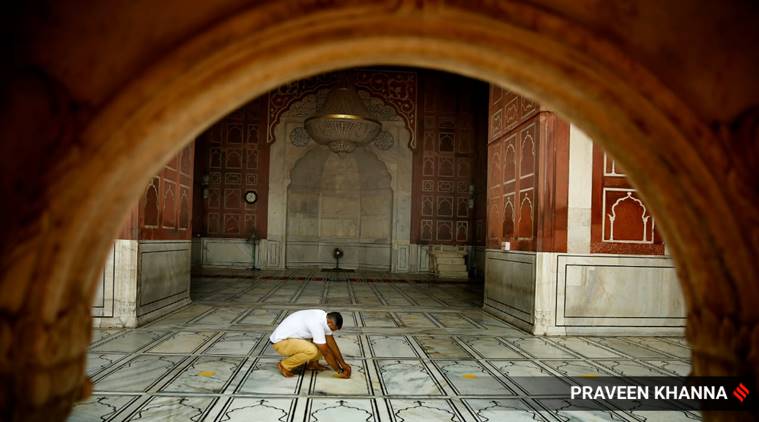 Imam Bukhari of the Jama Masjid told The Indian Express, “We have emptied the pond in the premises so no wazu (ablution) is done there to avoid spread of Covid-19. We have asked devotees to do wazu at home. We have removed the carpet as well, and have asked people to bring their own prayer mats. Alternate rows will be empty.”