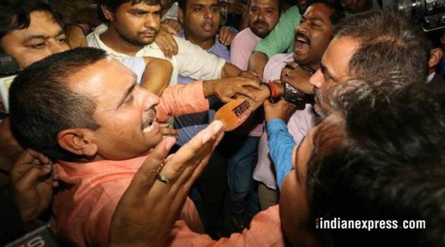 Unnao rape case: FIR registered against BJP MLA Kuldeep Singh Sengar, CBI to investigate BJP MLA Kuldeep Singh Sengar along with his associates clash with media outside SSP office in Lucknow. (Express photo by Vishal Srivastav)