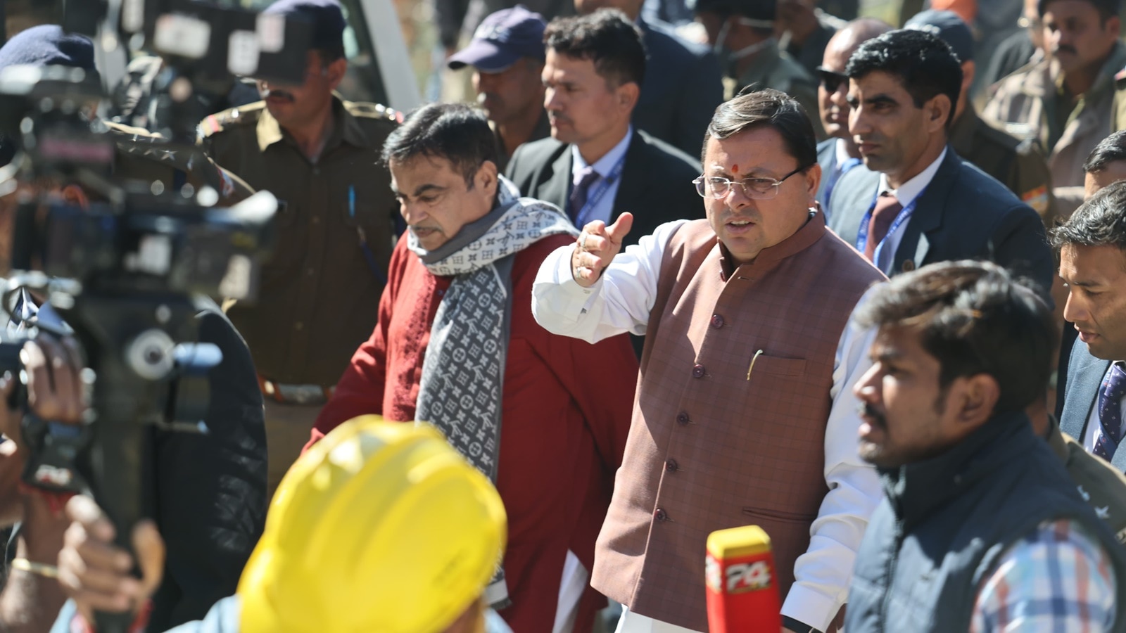 Union Minister for Road Transport and Highways Nitin Gadkari visited the spot on Sunday, along with Uttarakhand Chief Minister Pushkar Singh Dhami, and reviewed the rescue operations. (Express photo by Chitral Khambhati)