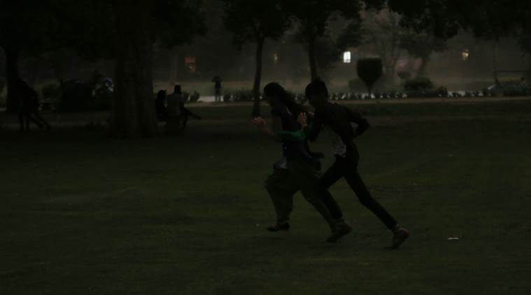 The sky turned cloudy around 4:30pm and gusty winds swept the national capital. (Express photo/Premnath Pandey)