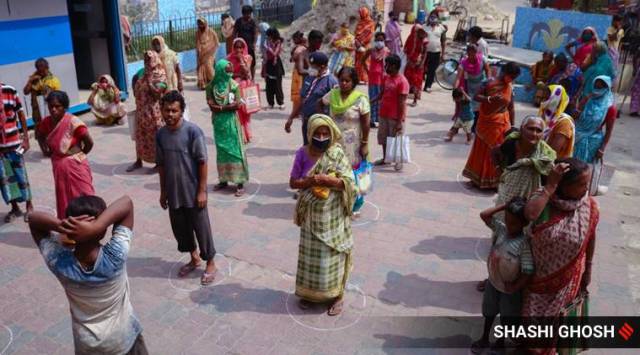 Homeless people waiting for food in North 24 Pargana, Barasat. (Express Photo by Shashi Ghosh)