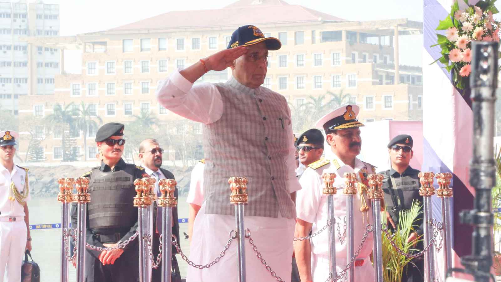 Rajnath Singh at the commissioning ceremony of the INS Imphal at the Naval Dockyard in Mumbai. (Photo: PIB)